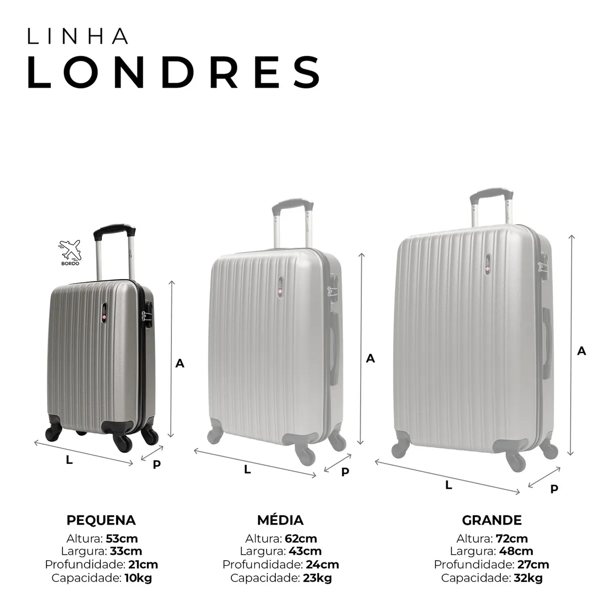 Mala de viagem bordo pequena 10kg Londres Swiss Move Prata